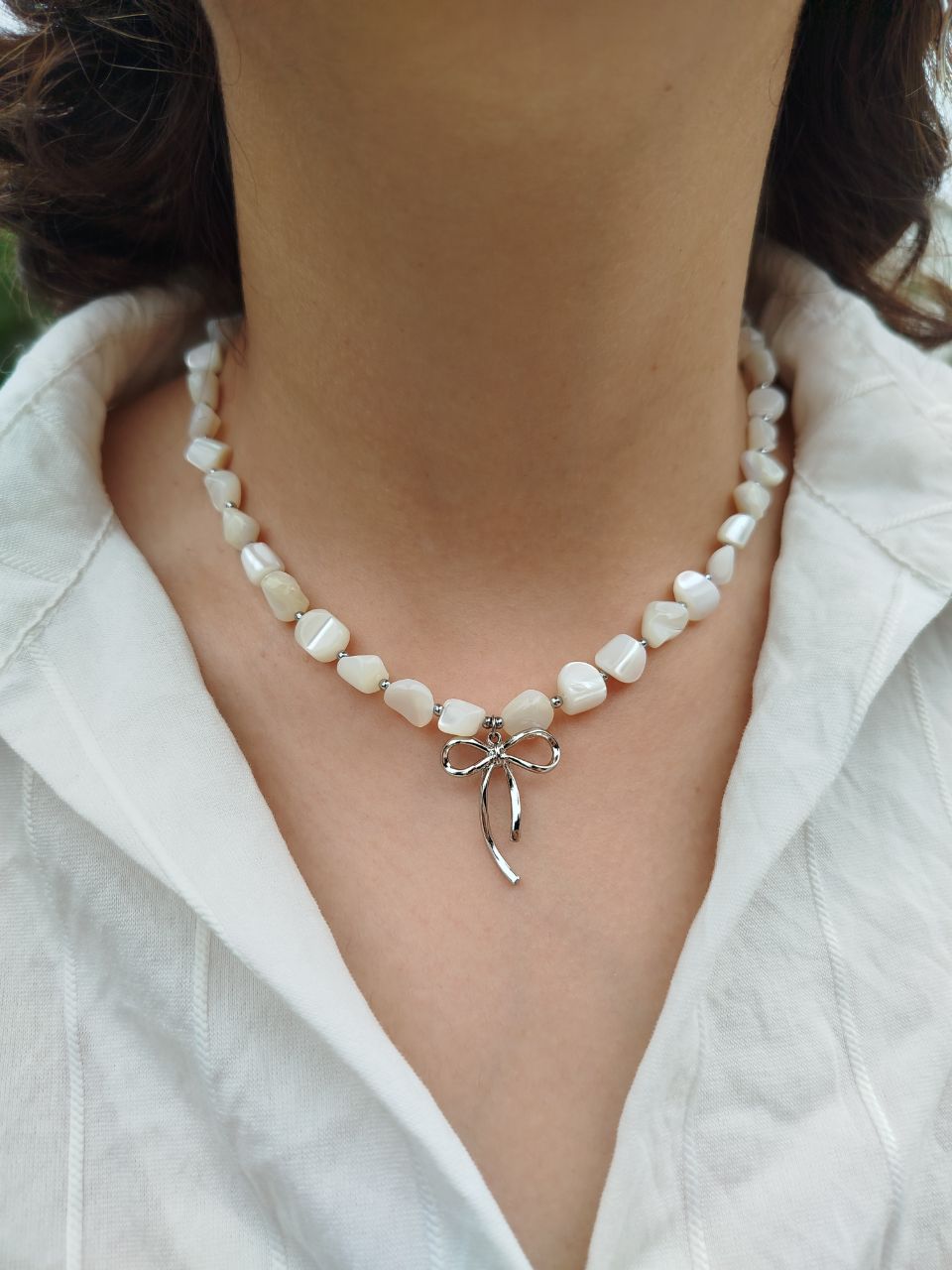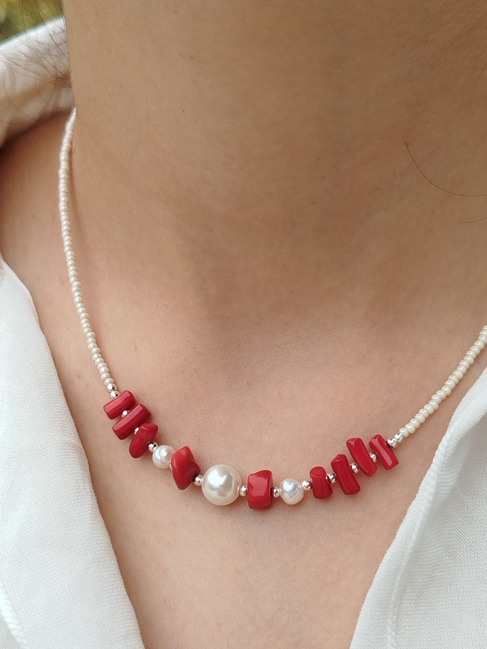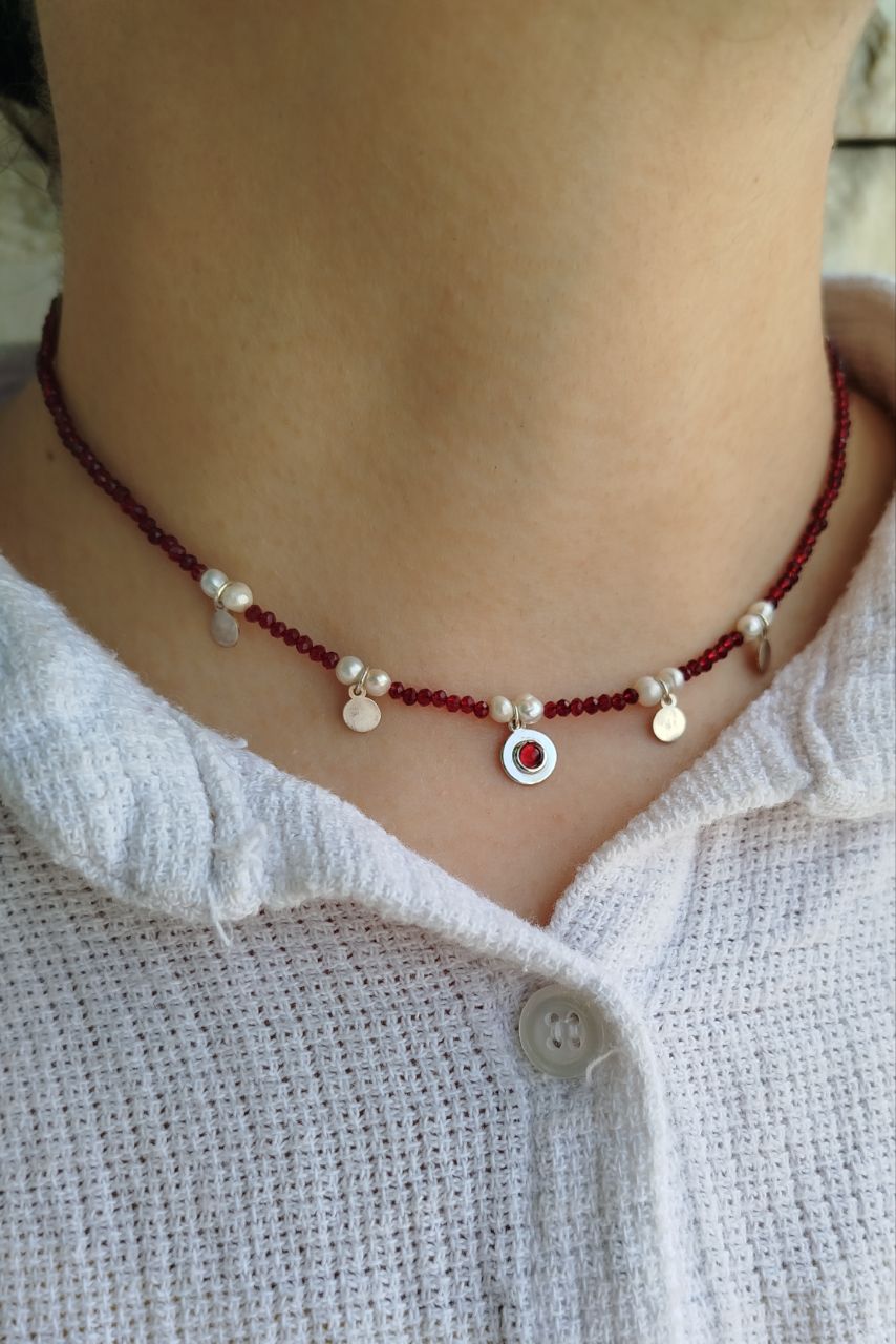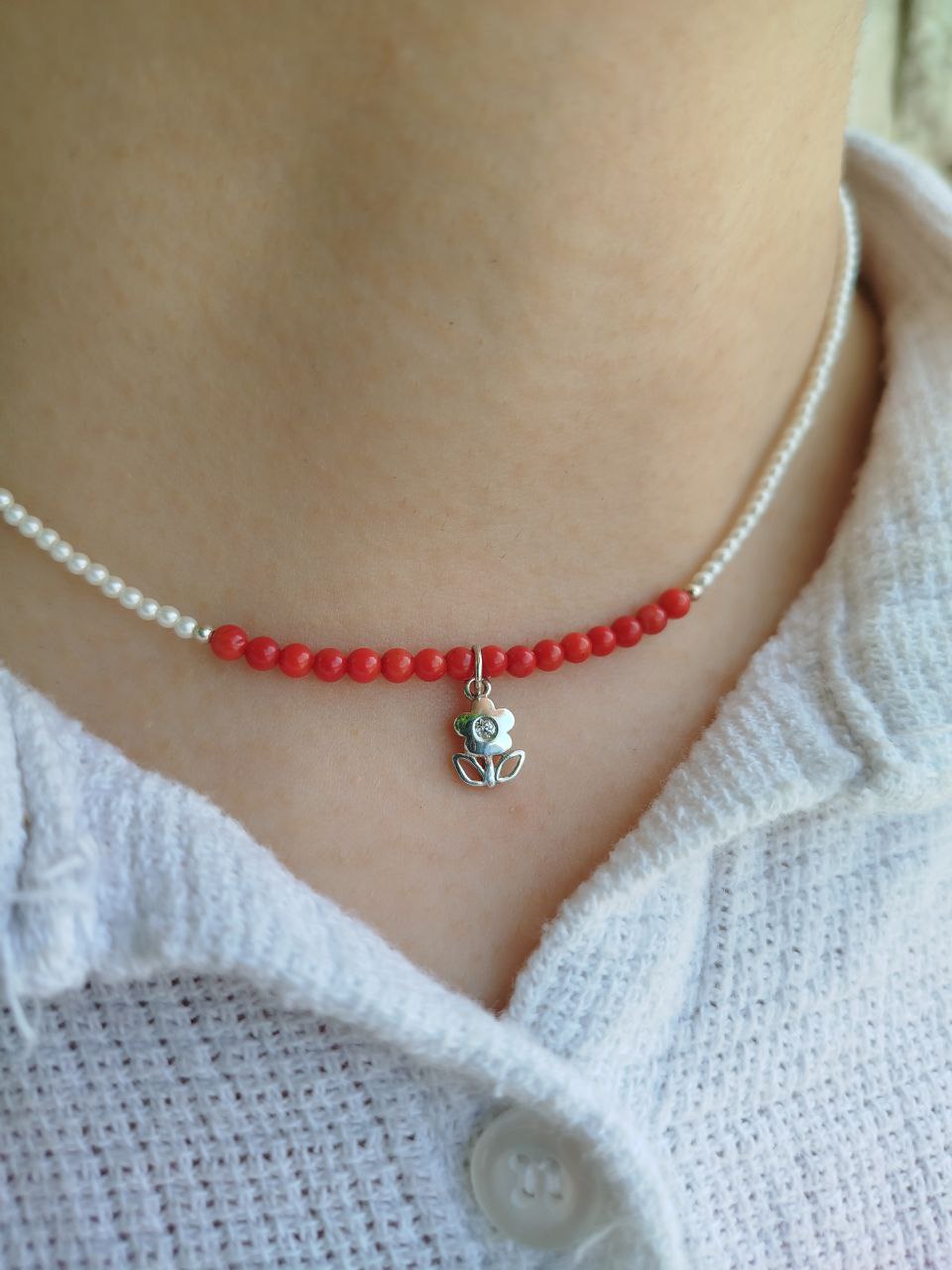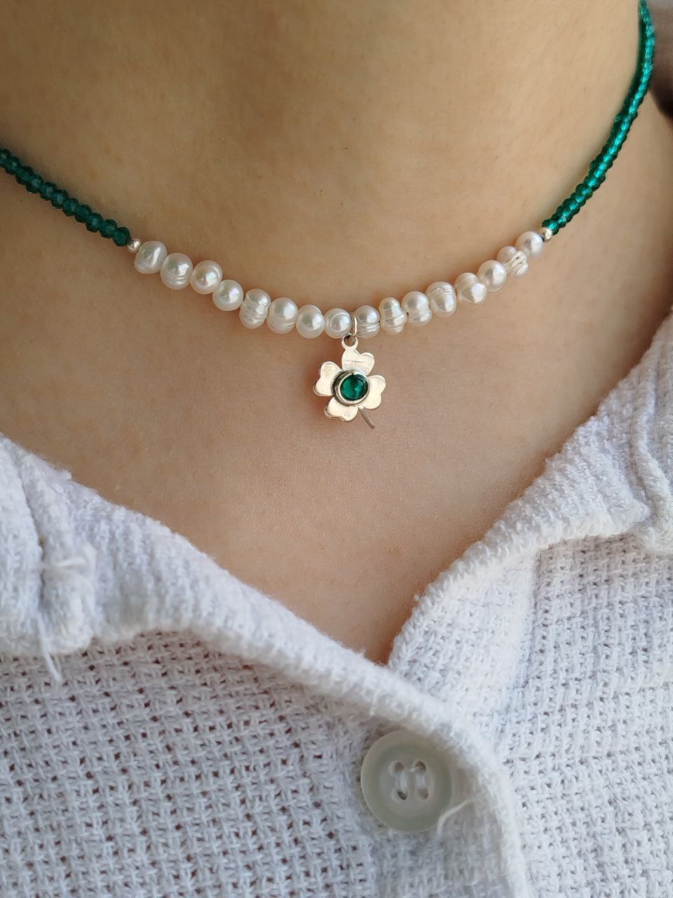 گردنبند نقره همراه با مروارید طبیعی و کریستال