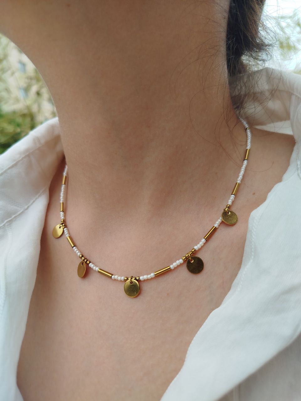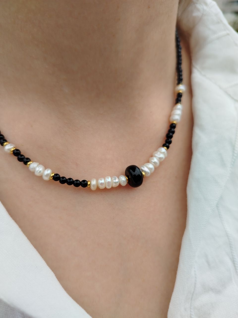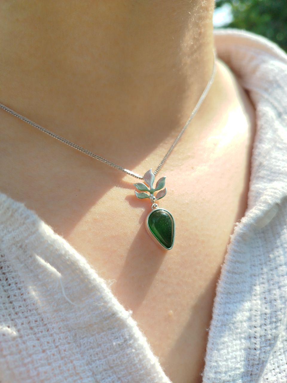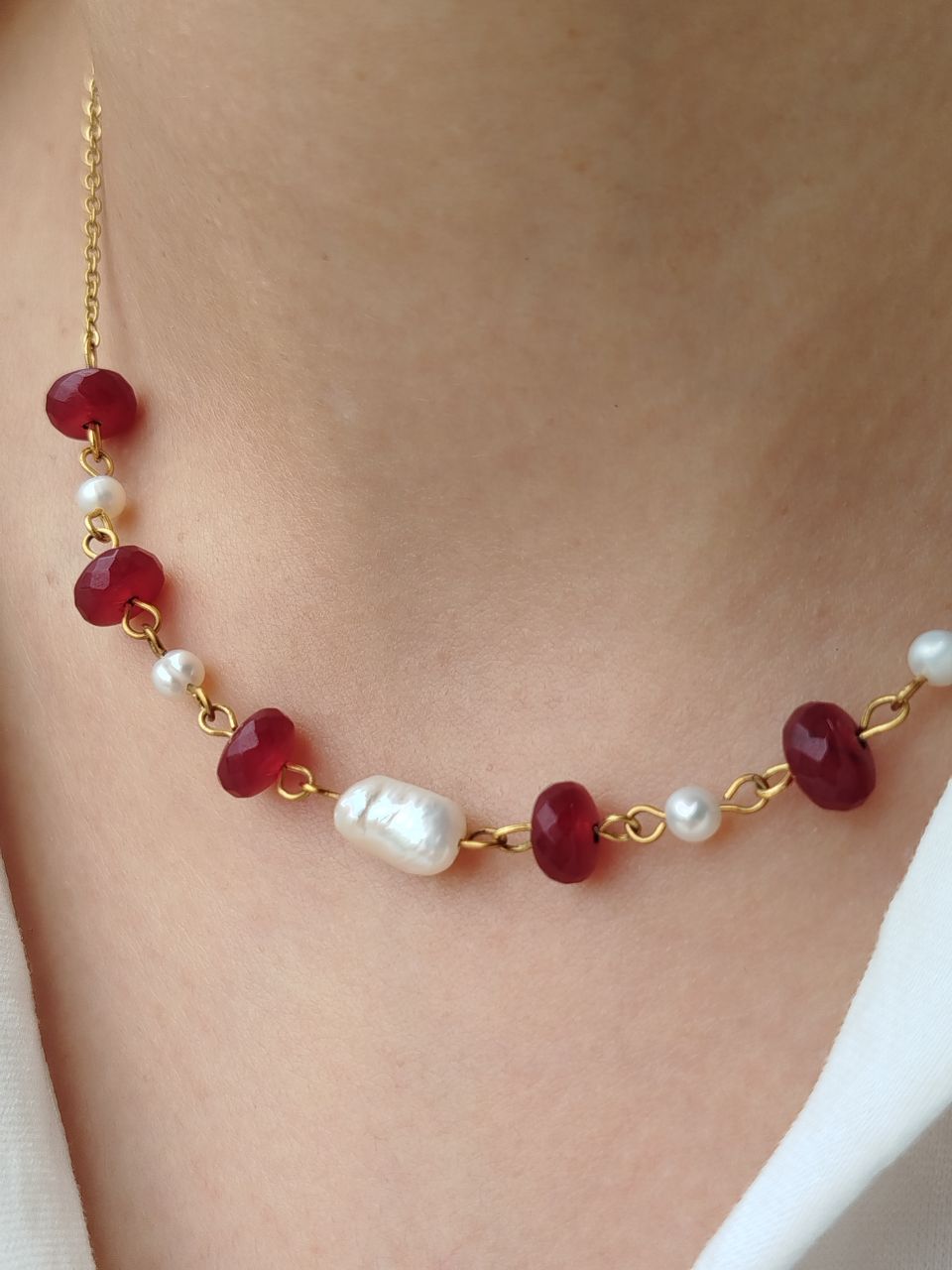 گردنبند نقره همراه با مروارید طبیعی و کریستال